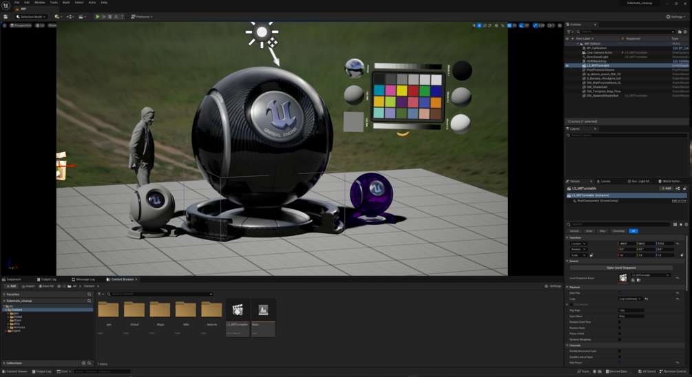 When you open the project, there's a LS_MtlTurntable Level Sequence in the root of the Content folder in the Content Browser. Double click that to open it in Sequencer, and click on the Camera Cuts camera icon to instantiate the spawned CineCamera Actor. Playing the sequence rotates the sample sphere 360 degrees and then rotates the scene lighting (but not the HDRI) around the ball, so you can see how the materials works from different angles and using different incident lighting angles. The project isn't polished, but it's only a buck. Gumroad required you charge at least $1 for anything over 250MB in size - consider it a way to tip me - I'll use it to play some pinball or to buy myself a pint :-) If it's not worth a buck to you, feel free to grab it directly from my Patreon.